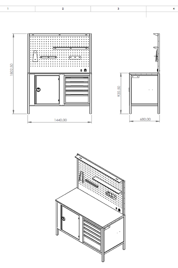 dorf 1.5 metre dolaplı çalışma tezgahı