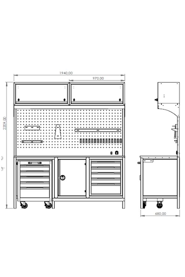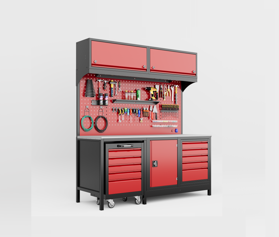 DORF 2 Metre Modüler Üst Dolaplı 5 Çekmeceli Takım Arabalı Çalışma Tezgahı Boş