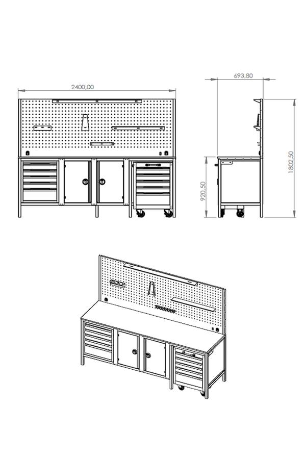 Atölye ve servisler için özel olarak tasarlanan 2.5 metre profesyonel takım tezgahı, kompakt yapısına rağmen yüksek depolama kapasitesi ve dayanıklı gövdesiyle uzun ömürlü kullanım sunar. Düzenli, güvenli ve verimli bir çalışma alanı oluşturmak isteyenler için ideal çözümdür.
