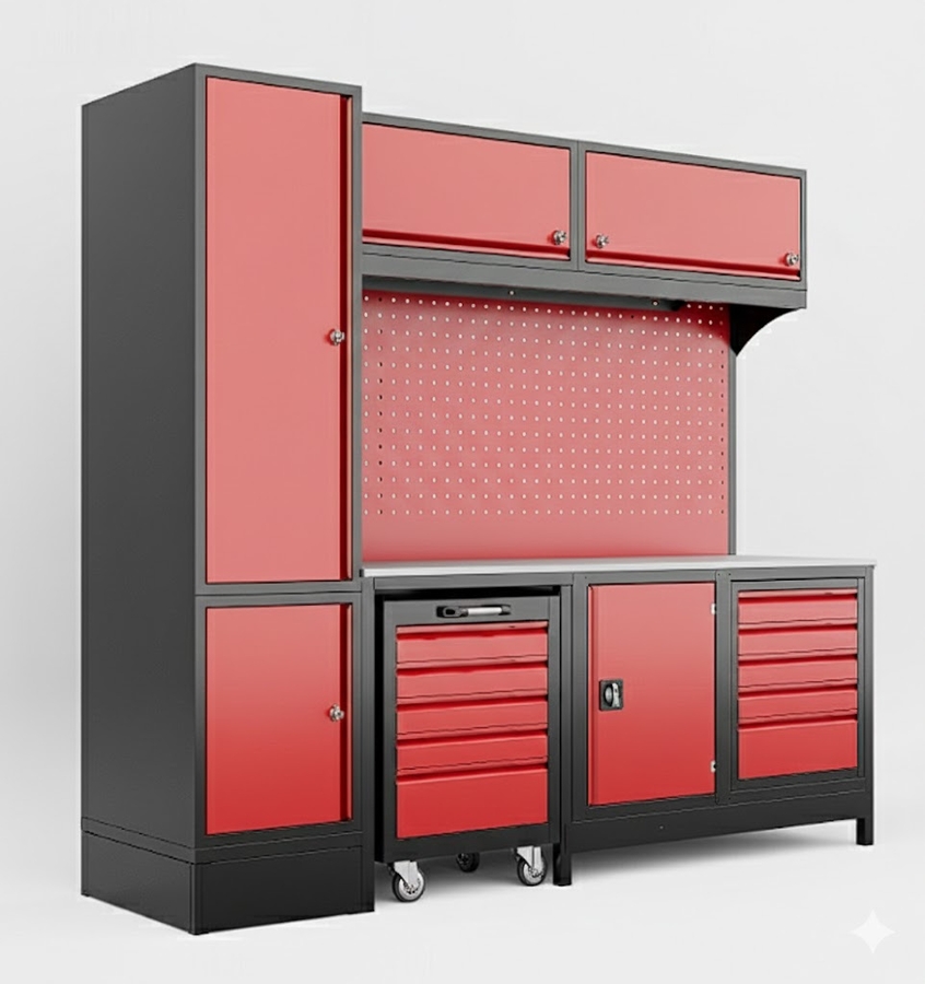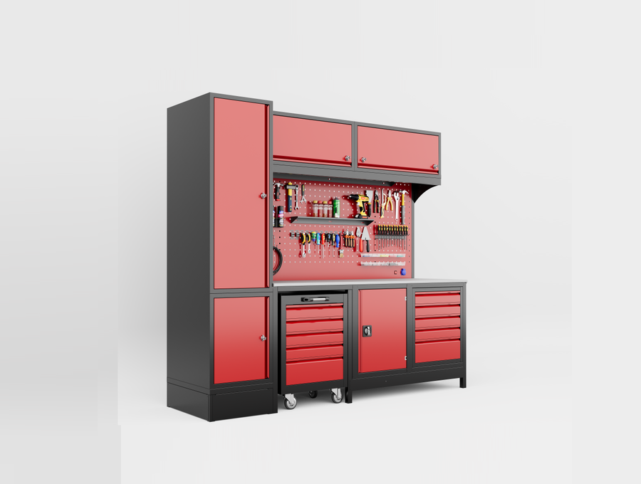 DORF 2,5 Metre Modüler Üst ve Sol Dolaplı 5 Çekmeceli Takım Arabalı Çalışma Tezgahı Boş