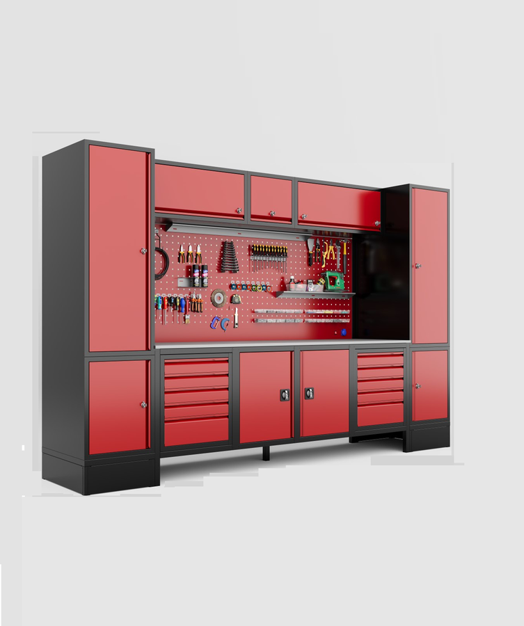 DORF 3,5 Metre Modüler Üst, Sağ ve Sol Dolaplı 10 Çekmeceli 2 Dolaplı Çalışma Tezgahı Boş