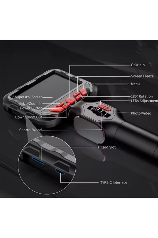 DORF Su Geçirmez 4.3 Inç Ips Ekran 210 Derece Oynar Başlıklı Eklemli Esnek Endoskop Yılan Kamera 6mm